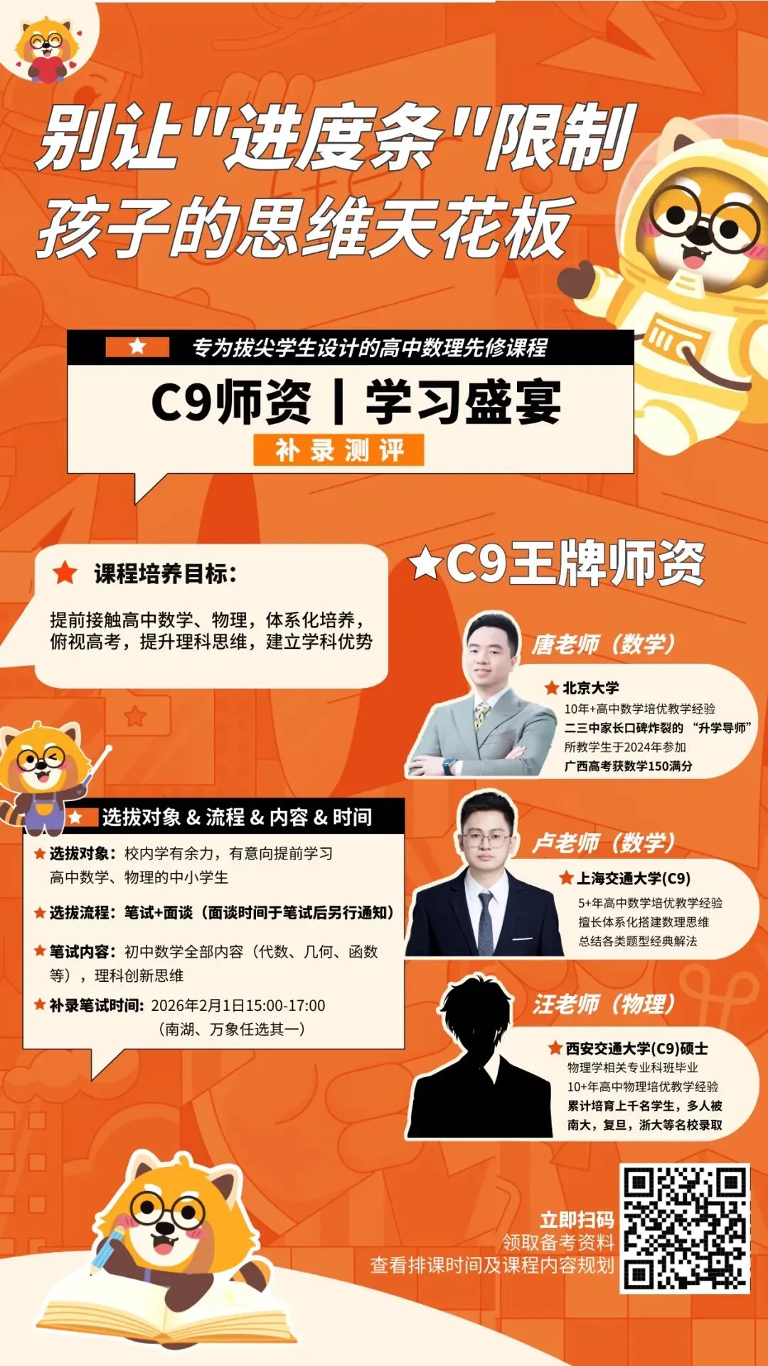 如果孩子在校内学有余力,想提前布局高中数理、突破思维天花板,这个机会别错过👇