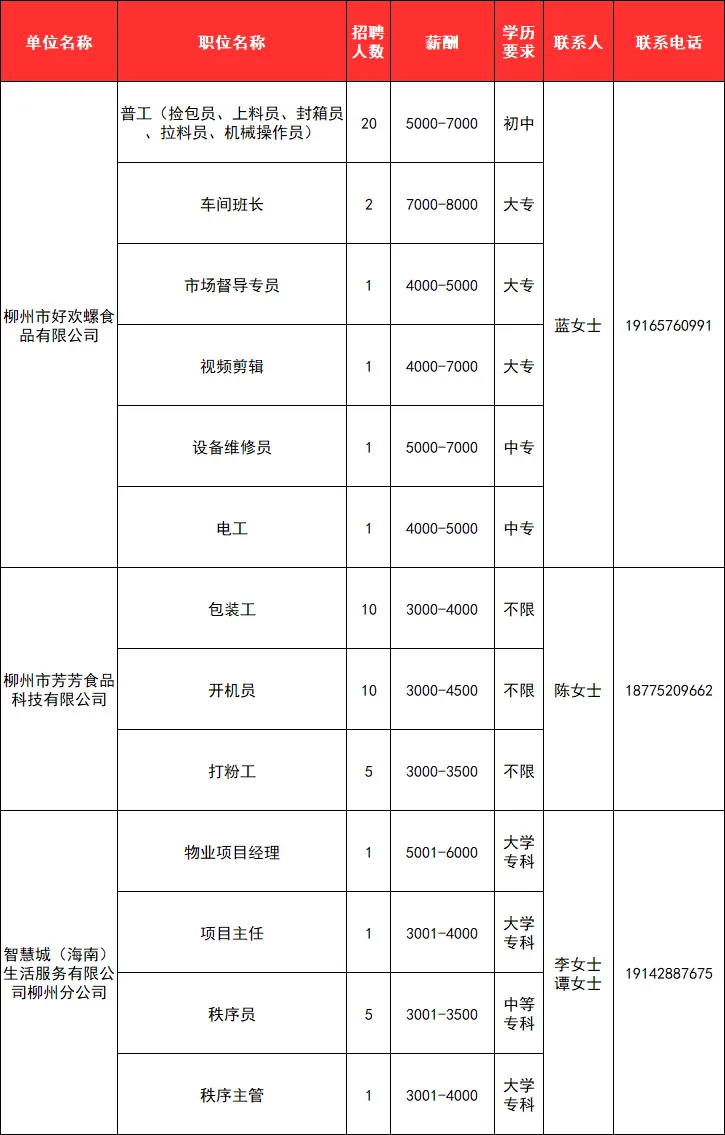 柳州企业优质岗位