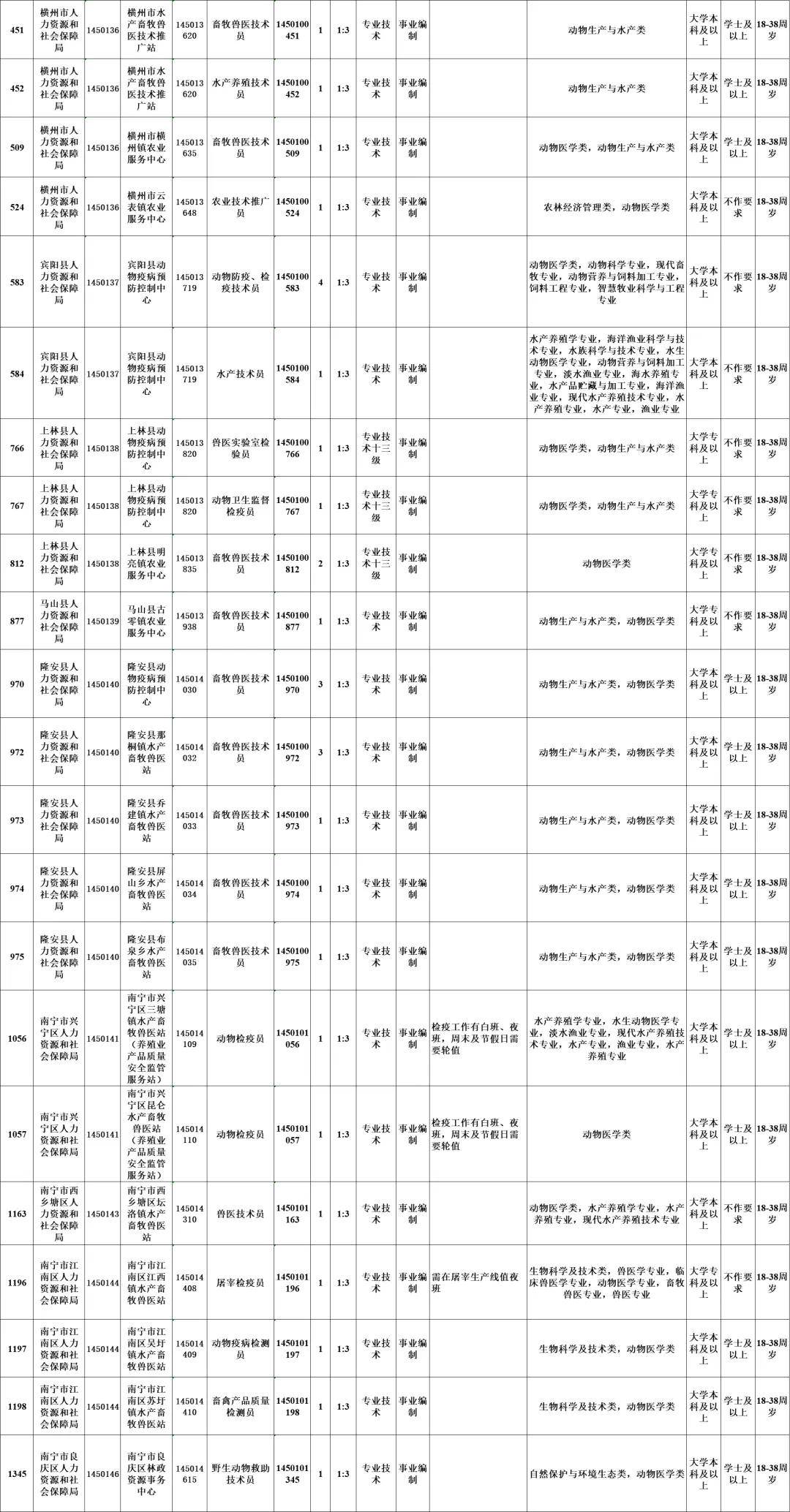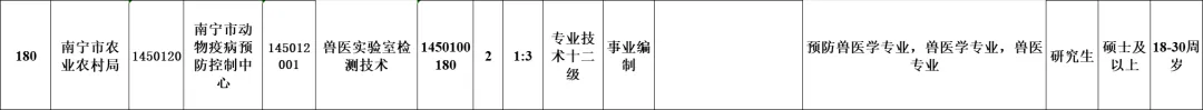 【广西】南宁市事业单位招聘多名动物医学类、动物生产与水产类专本硕毕业生