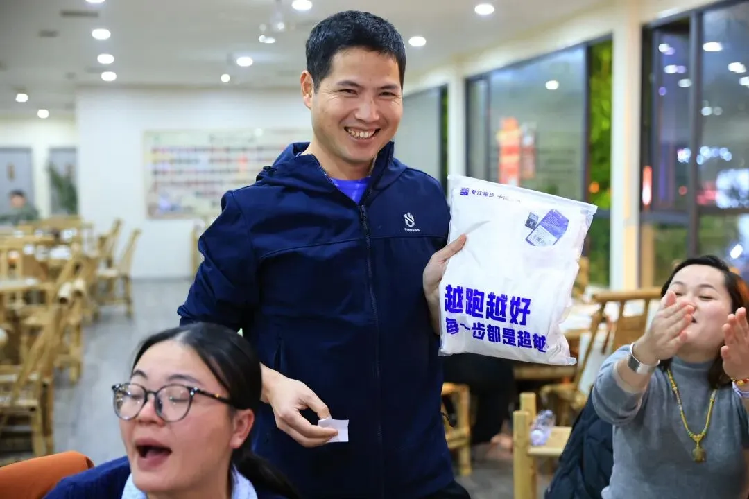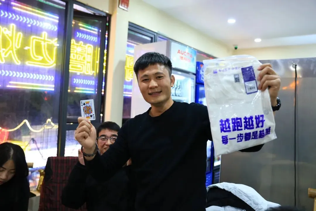 抽奖环节点亮高潮,随着团副抽奖逐一揭晓。获奖跑友分享着“一个人跑得很快,一群人跑得更远”的心声,正如跑团补给区始终不变的默契:递水递食间的扶持,跑后分享时的真诚。互动敬酒环节更为生动,笑声穿透楼层,让陌生跑友渐成挚友。