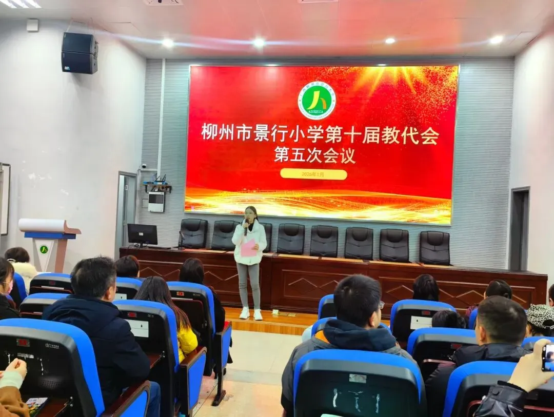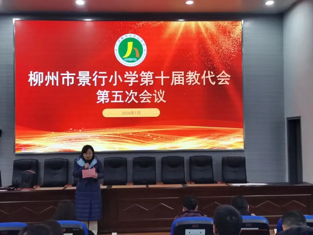 2026年1月23日,柳州市景行小学第十届教代会第五次会议在总部学术报告厅隆重举行。全体教职工代表齐聚一堂,以高度的责任感和使命感,共商学校发展大计、共绘教育奋进蓝图,会议由工会主席邱利平主持。