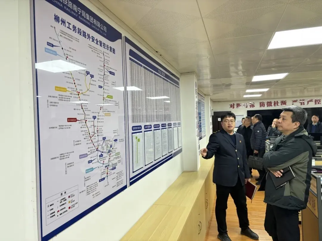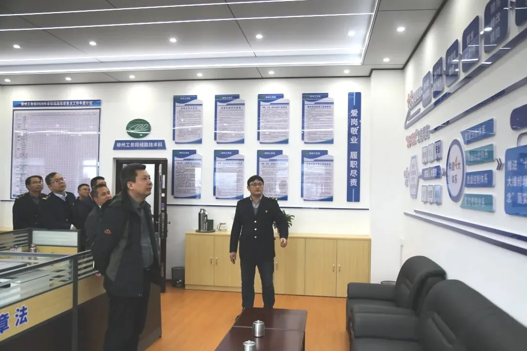 参会人员实地参观了柳州工务段施工办、安全科、指挥中心、线路科、路桥科等标准化科室。通过现场查看、听取介绍,大家直观感受了柳州工务段在标准化科室建设中规范的管理流程、完善的制度体系和扎实的工作成效,为后续各单位推进相关工作提供了实践范本。