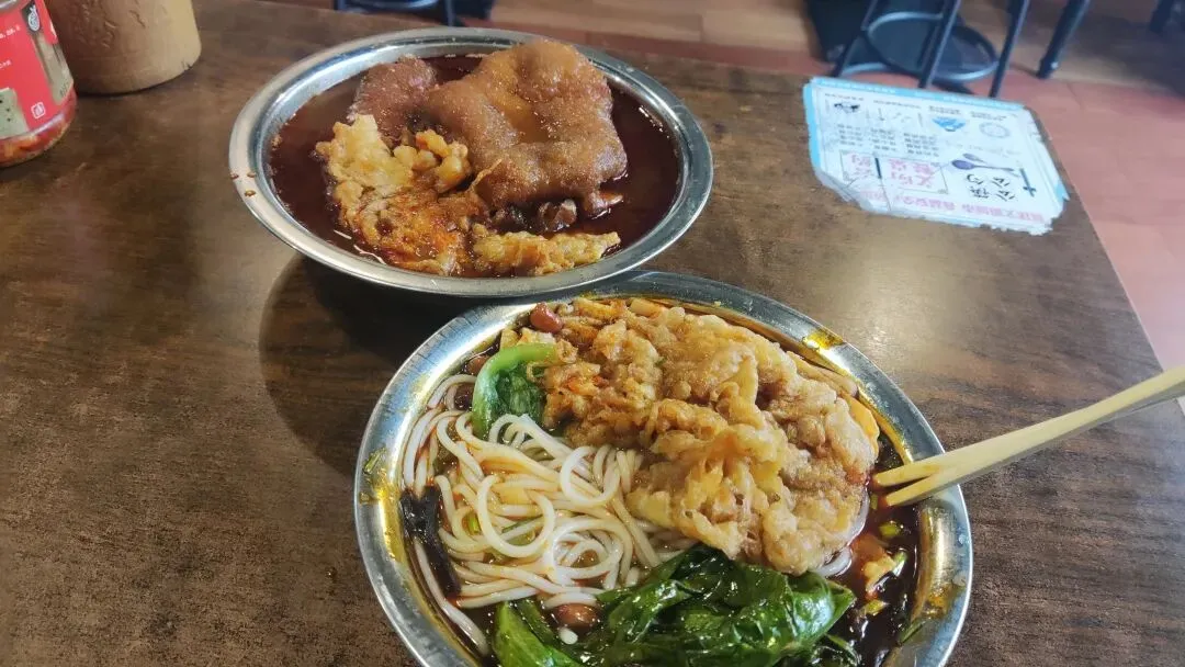 入住就问前台附近有没有好吃的螺蛳粉,她们推荐了一家她们常吃的“螺森林”,很小的店,但是味道确实不错,吃了2两粉,一个猪蹄,一个炸蛋,一个鸡爪,还有一个土豆!撑够呛!