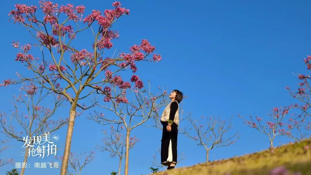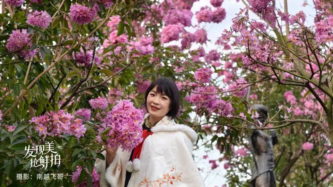 上千株紫花风铃木迎风绽放