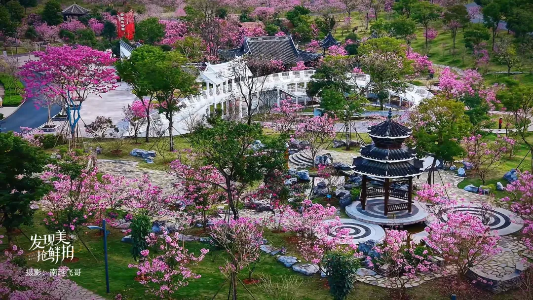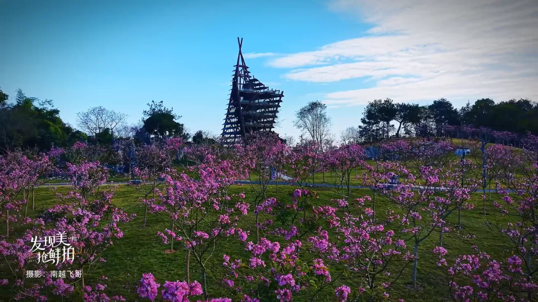 1、地址:南宁市邕宁区蒲兴大道20号,直接导航“南宁园博园”,从东大门入园,沿步道步行十分钟可达清泉阁背后的紫花风铃园。