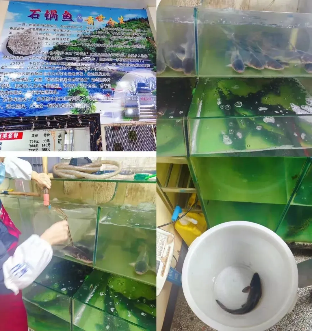 鱼是现挑现杀的,鱼缸就在里屋,草鱼、鲟龙鱼、花鱼、江团四种鱼,想吃哪种自己选,大小也能自己定,完全不用担心缺斤少两,老板娘极力推荐江团,说两个人吃刚好,我听劝点了一条,现在想想,真的太对了。