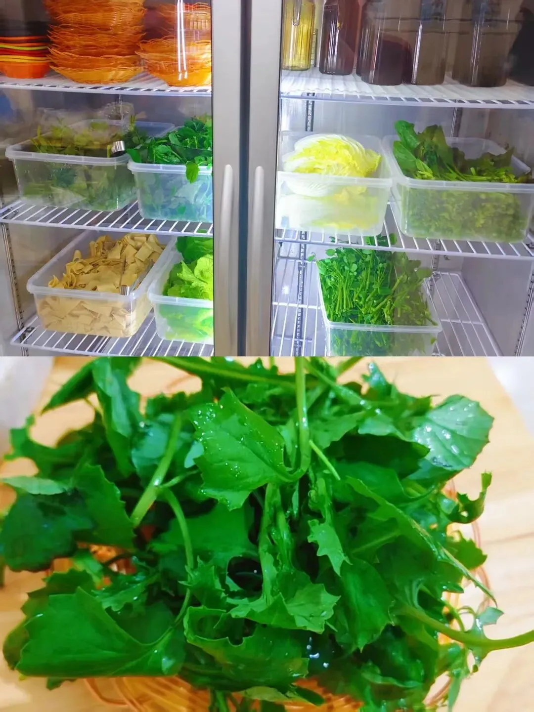最惊喜的是居然有免费自助青菜,冰柜里塞得满满当当,各种青菜都很新鲜,还有平时很少见的野菜一点红,随便拿随便涮,不用额外加钱,必须给好评。