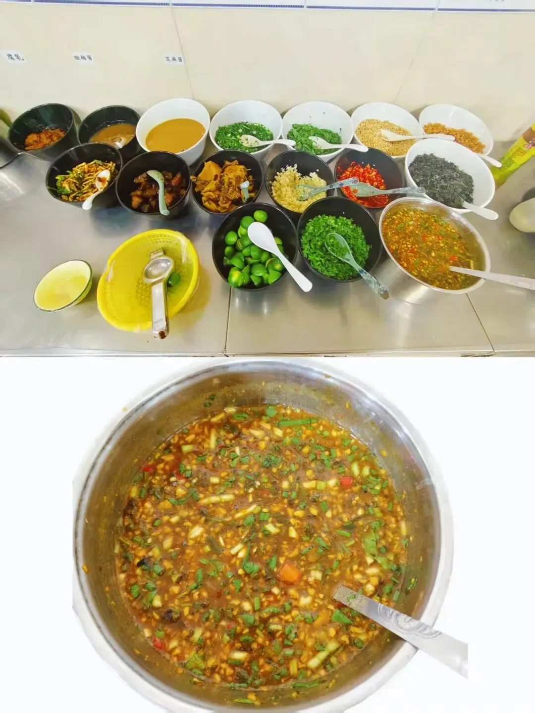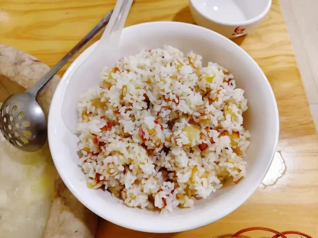 小料台也超丰富,各种调料随便搭,还有他们家的特色调料,一定要试试,清爽解腻,蘸着鱼肉吃,口感直接翻倍。老板娘说,他们家的洋芋焖饭,出了这个门就吃不到了,里面的火腿都是从云南寄过来的,专门为了做这个焖饭。点了一份中份的,很好吃,米饭吸满了火腿的咸香和洋芋的软糯,吃不完打包回家,第二天蒸一下,还是一样好吃!