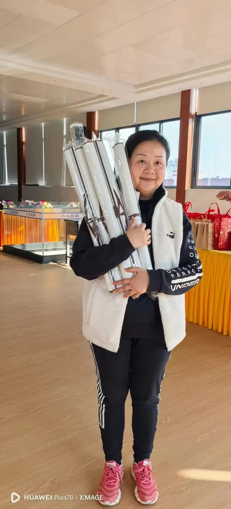 庆典的圆满,离不开那些藏在细节里的付出。会员余海棠默默备下的80多个精美包装袋,让每一份奖品都盛满了郑重的心意;理事潘静为寻觅地道特产,深夜仍在市场奔走;副会长何志坚与会员梁丽洁捐赠的多组景区门票,是一份份邀约同行、共赏八桂风光的情谊;会员谢沁谕的书法摆台与大红“福”字,为庆典提笔写下的十六幅祝福语,让翰墨的雅韵在现场无声流淌。