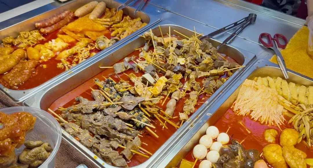 风情港夜市更是热闹得很,刚走到螺蛳牛杂摊前,脚步就挪不动了。