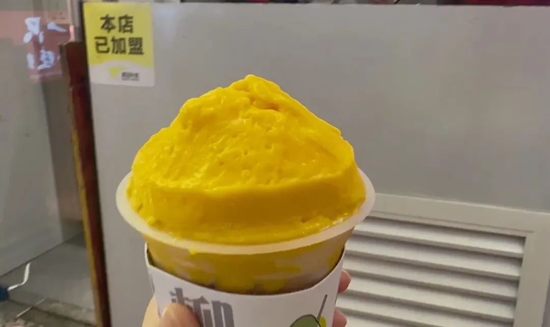 坐在摊位旁的小板凳等上,看街区人来人往,十分热闹,各种美食琳琅满目,简直到了美食天堂一样。虽然是冬季,但柳州这两天还算暖和,顺手买了份卢姐炒冰的芒果冰,小哥现倒果肉现炒,冰沙细腻果香浓郁,吃完重口的螺蛳牛杂来上一口,解腻又清爽。