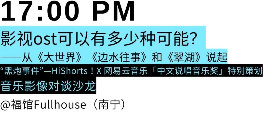 本次HiShorts!南宁影乐季有幸邀请到了林海老师的音乐人访谈纪录片《六重奏》的第二季前来首映,在这个音乐+电影人年末聚集的盛宴上,这个片子的见面显得尤为特别,好像是在帮他找寻第一批观众,我们邀请到同样在曾经是上海90年代著名的乐评人孙孟晋老师,90年代看着林海老师主持的《天籁村》看着孙孟晋老师写的顶楼马戏团的乐评,伴我度过了青春年华。