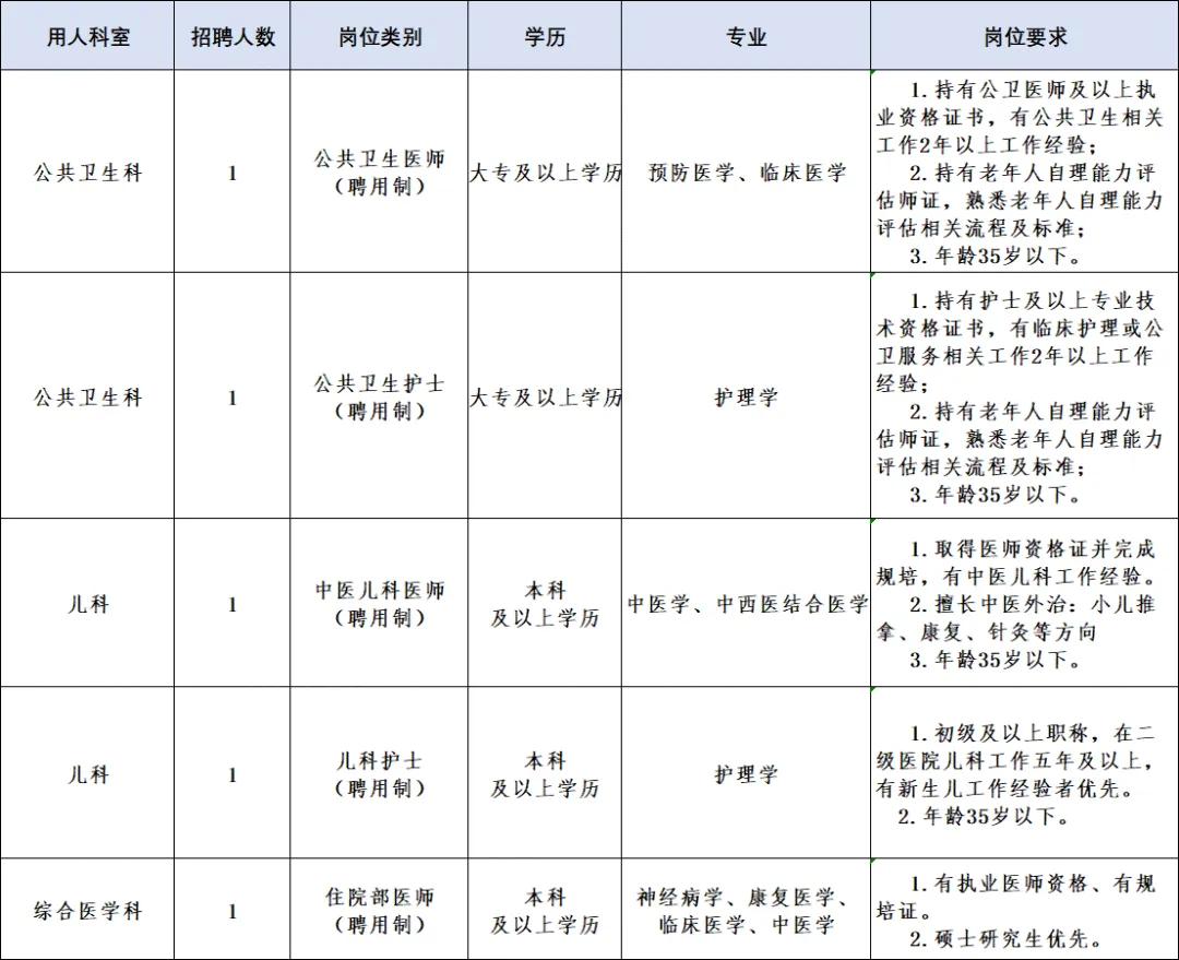 招聘岗位及条件