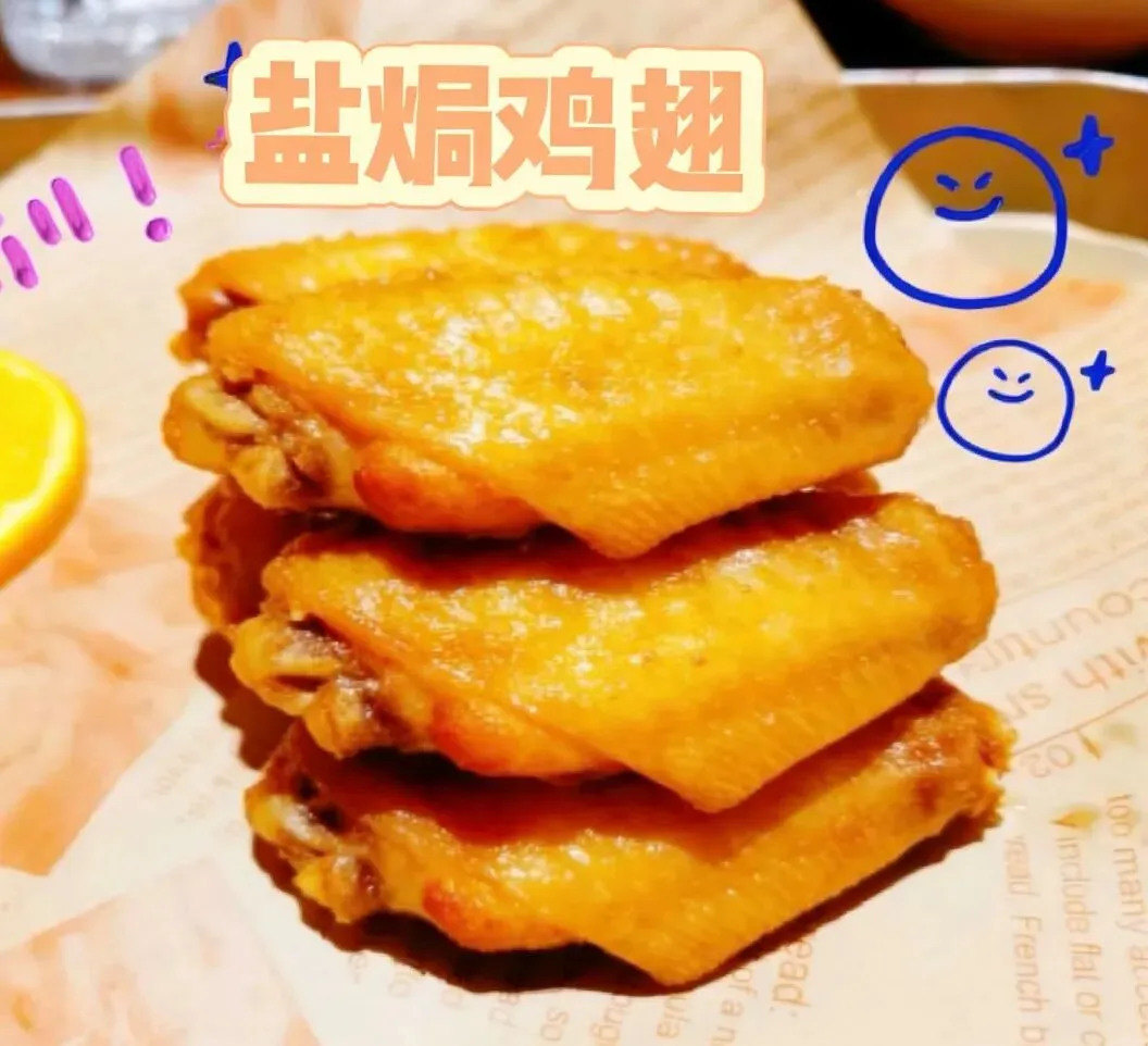 盐焗鸡翅、双丝炒肉、白灼菜心、