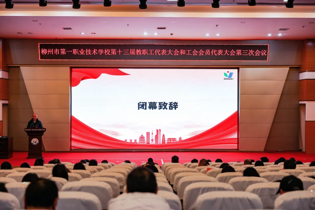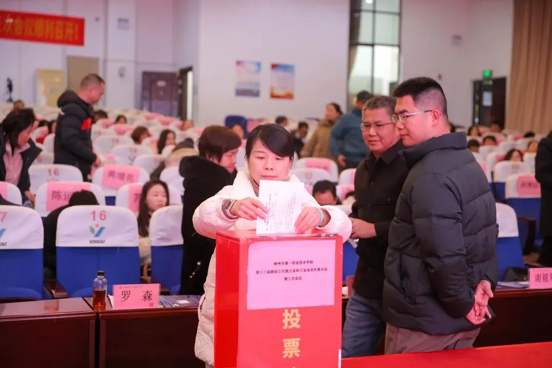 2026年1月23日,柳州市第一职业技术学校第十三届教职工代表大会和工会会员代表大会第三次会议在学校志研厅顺利召开。参加会议的有柳州市第一职业技术学校第十三届教职工代表95名、工会会员代表35名及列席代表13名。会议以习近平新时代中国特色社会主义思想为指导,全面贯彻党的二十大及二十届历次全会精神、中国工会十八大精神,在喜迎“十五五”规划开局、推进学校高质量发展的关键时期,汇聚全体代表智慧,共商发展大计。