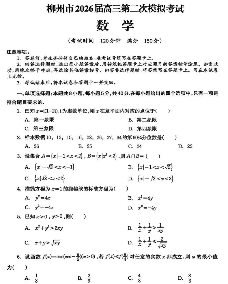 我用夸克网盘给你分享了「【广西卷】广西壮族自治区柳州市2026届高三年级上学期第二次模拟考试(柳州二模)(1.19-1.21) 全科试卷+答案」,点击链接或复制整段内容,打开「夸克APP」即可获取。