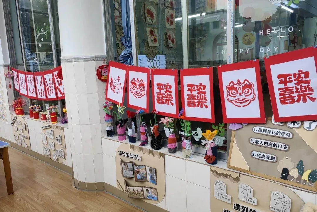 公共区域是孩子们交往互动、自主探索的共享空间,本次评比中,各公共区以童趣化、互动性、教育性为核心,大班组围绕“趣探醒狮”、中班组聚焦“‘布’期而遇”、小班组则着眼于“非遗拓印”,打造出一个个充满吸引力的小天地。