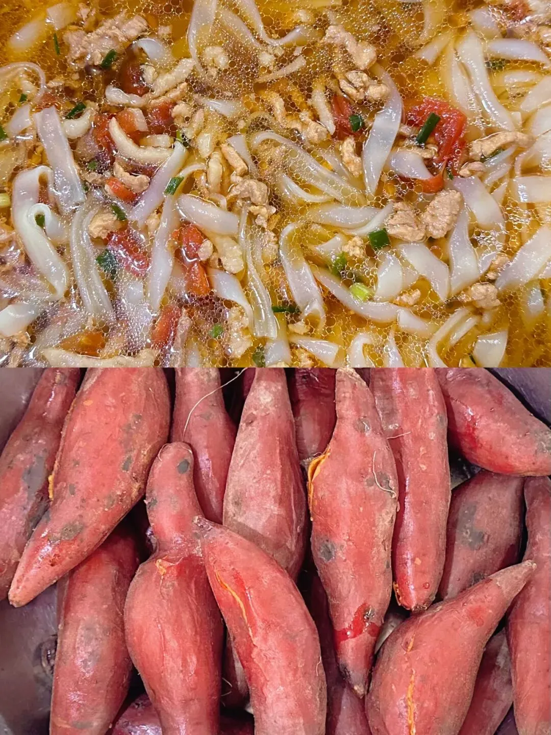 茄汁肉沫粉、蒸红薯