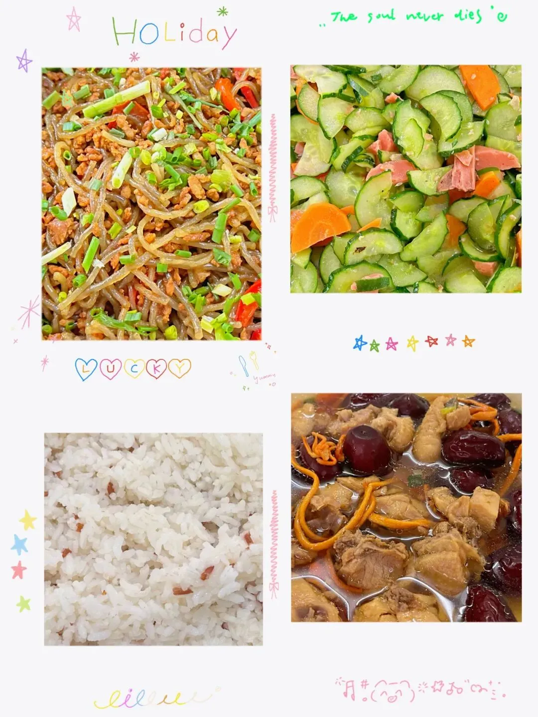 火腿炒黄瓜、虫草花鸡汤