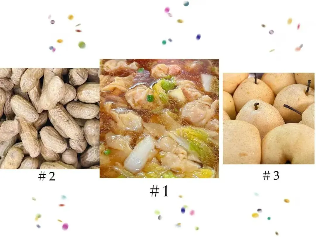 鲜肉云吞、水煮花生、时令水果