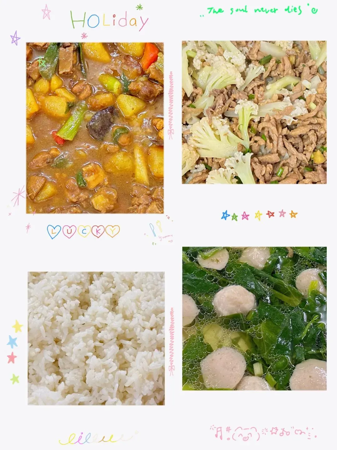 小炒花椰菜、青菜肉丸汤