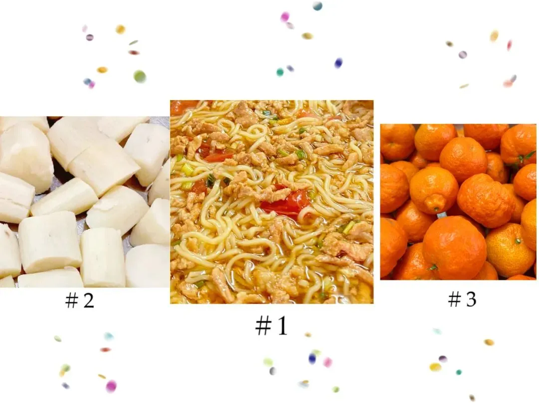 三鲜汤面、葡萄干、时令水果