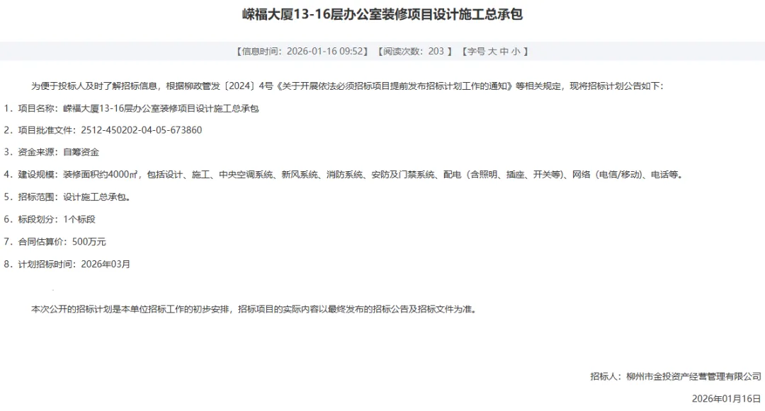 发布一则招标计划公告