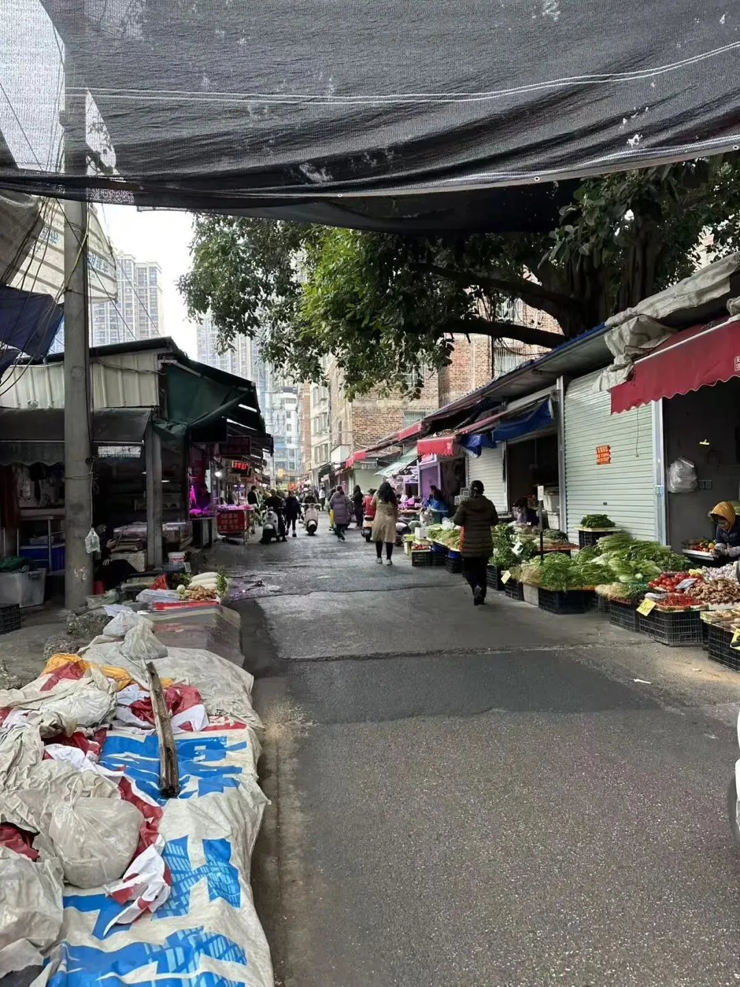 坑坑洼洼的路也抵挡不住买菜人的心,这边简直就是买菜人的天堂。