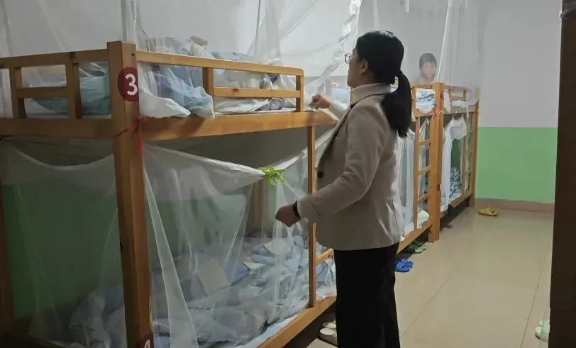 午休时分,梁老师又脚步匆匆地赶往各间宿舍查寝。她轻轻推开宿舍门,细心查看孩子们的休息状态,俯下身叮嘱踢掉被子的学生盖好被褥。遇到需要格外关注的情况,她会及时和家长取得联系,同步孩子的在校状态;对那些格外想家的孩子,她还会用暖心的话语鼓励安抚情绪,让孩子们在学校也能感受到家一般的温暖,安心休息。