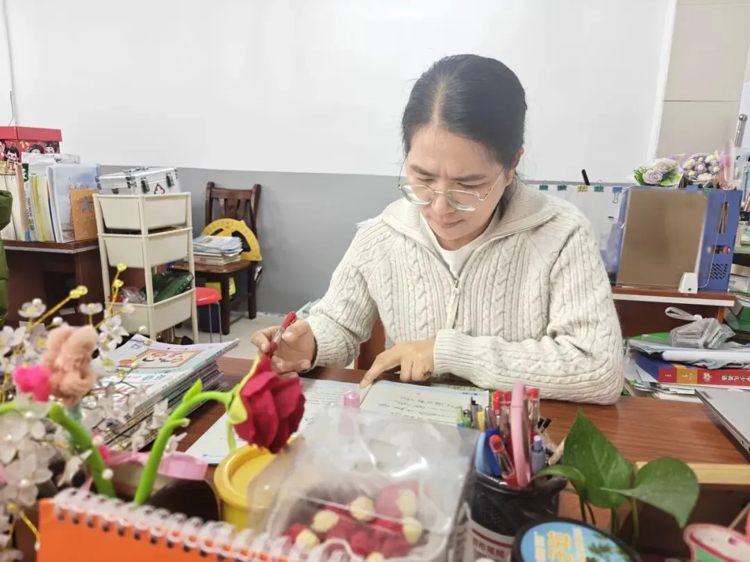 下午的时光,梁老师的脚步依旧不停歇。有课的时候,她带着饱满的热情走进教室,继续为孩子们播撒知识的种子;没课的间隙,她的办公桌前总是围满了学生。她埋首于堆积如山的作业本中,红笔划过之处,不仅是对错的标注,更是细致的批注与鼓励。遇到困惑的学生,她会一遍又一遍地讲解,直到孩子们露出恍然大悟的神情。
