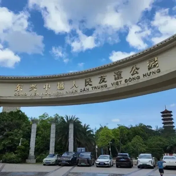 行程的最后,来到游人如织的东兴国门景区,不妨来体验一下边境小城的热闹。或行走在口岸商业街,越南春卷、屈头蛋、奶油咖啡等食物香气四溢,沿街店铺摆满了琳琅满目的中越好物,还有五颜六色的东南亚水果,让人忍不住开启“买买买”模式。在界碑旁拍下打卡照,出片率100%。