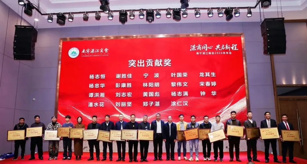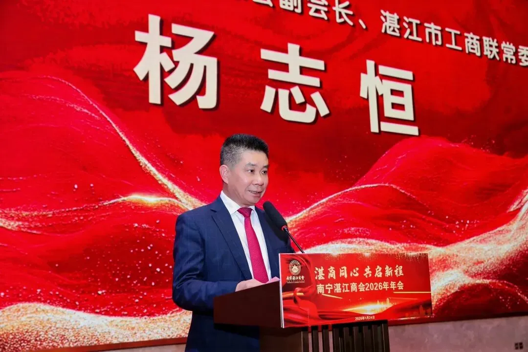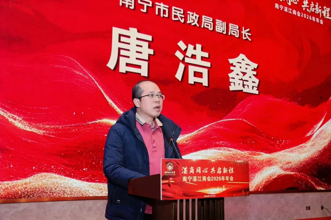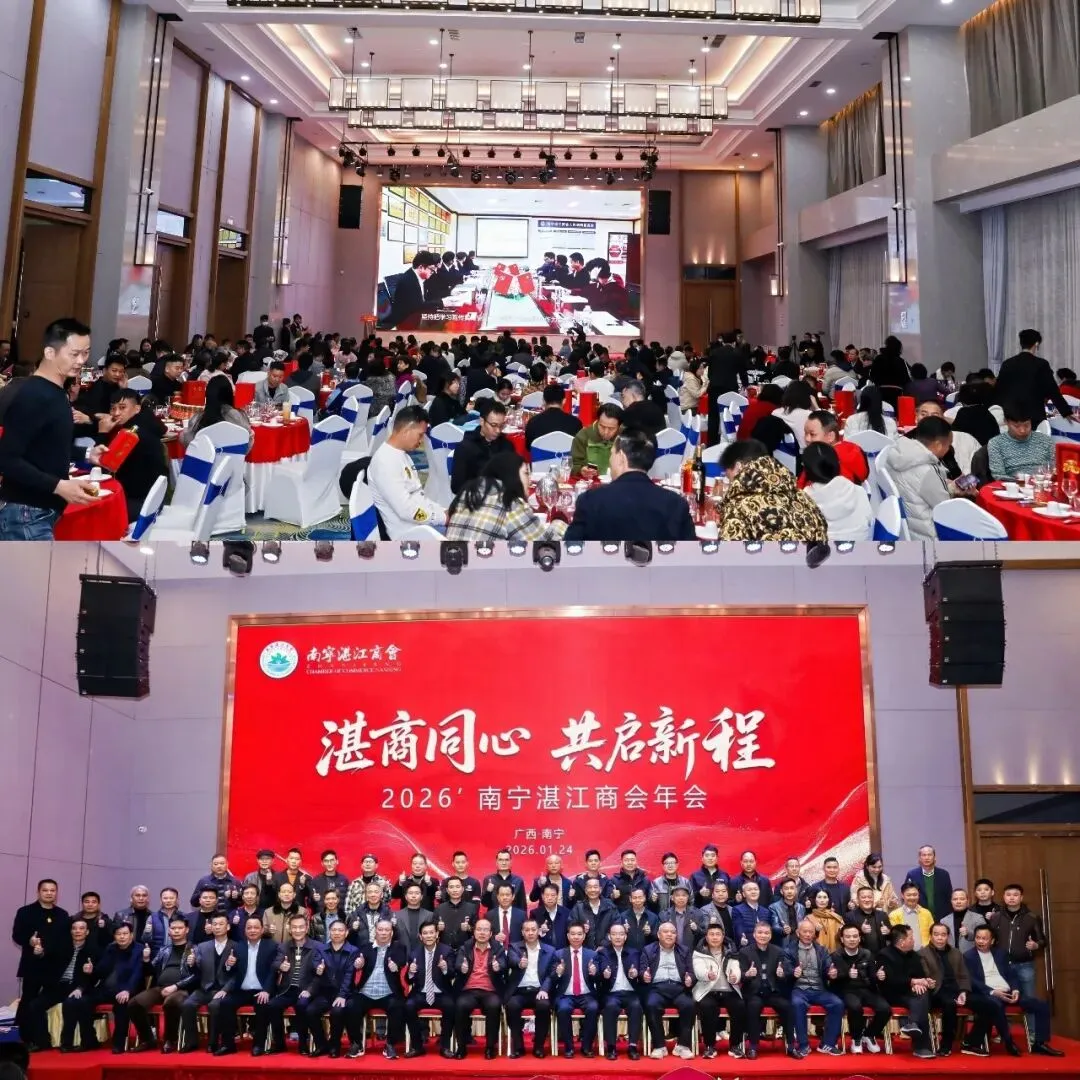 金蛇辞旧岁,骏马迎新春。2026年1月24日,以“湛商同心,共启新程”为主题的南宁湛江商会迎新春联谊会暨年会庆典,在南宁裕达国际大酒店隆重举行。商会全体会员、各兄弟商会代表及乡贤共300余人齐聚一堂,畅叙乡情友谊,共商发展大计,共话美好未来。