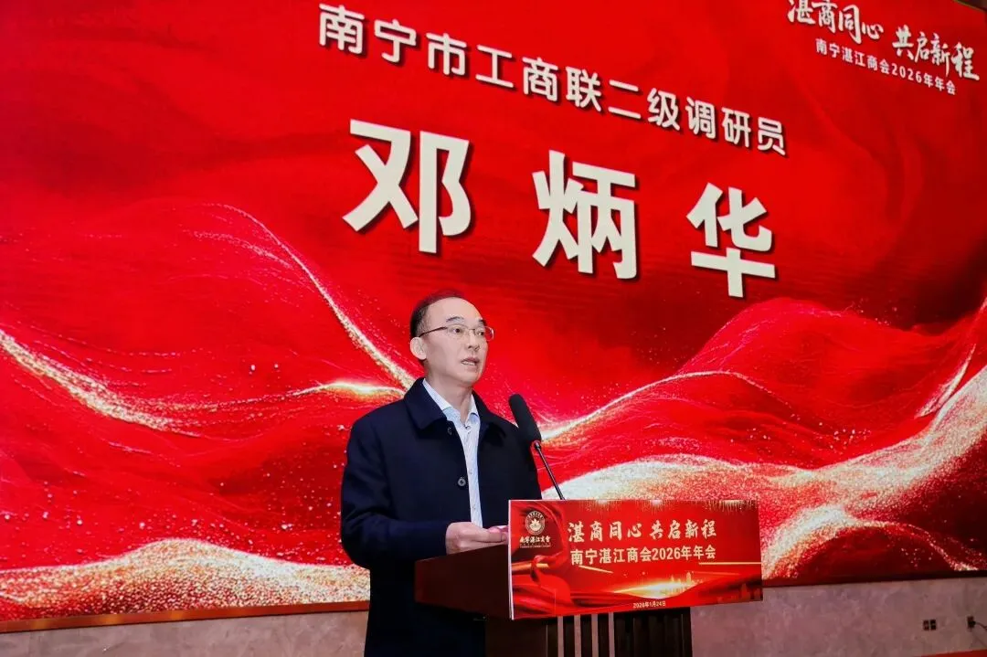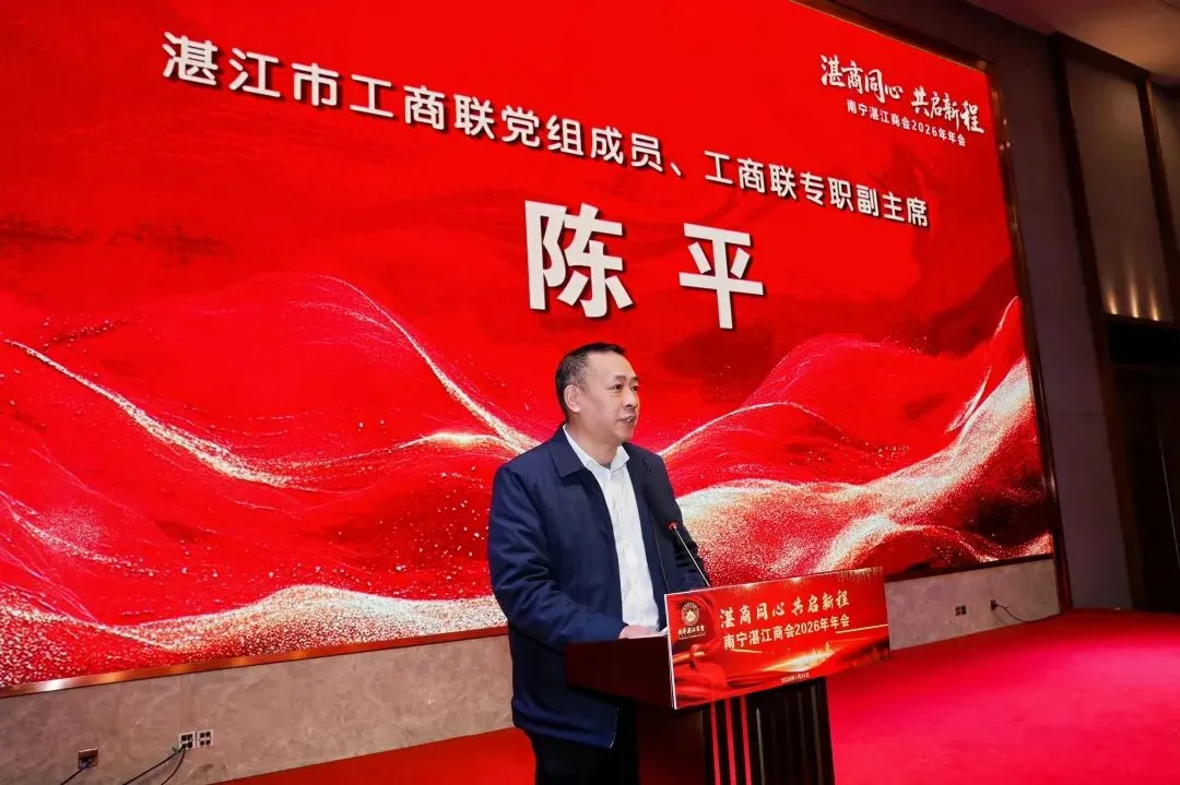 南宁市民政局副局长唐浩鑫、南宁市工商联二级调研员邓炳华、湛江市工商联党组成员、专职副主席陈平等领导应邀出席年会,对庆典活动的顺利举办表示热烈祝贺。致辞中,各位领导高度肯定了南宁湛江商会近年来取得的显著成就,同时寄语商会:要始终坚持党建引领,锚定两地发展大局,将企业发展与地方建设深度融合;要持续深化精准服务,拓宽会员企业市场空间;要传承发扬公益初心,在南宁、湛江两地协同发展中进一步打响湛商品牌,彰显湛商担当。