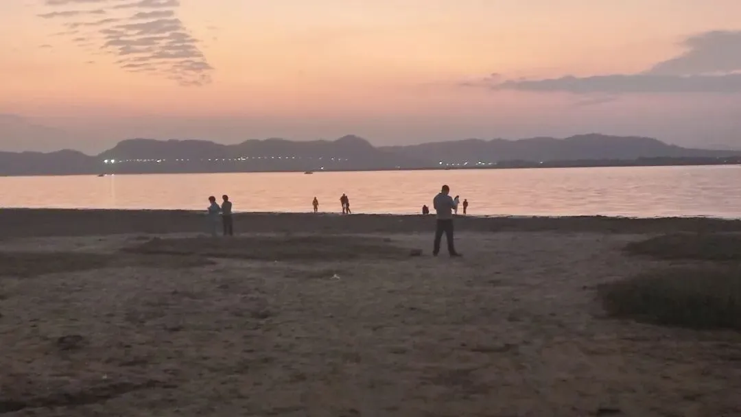 行至栈道尽头,便到了西湾的海滩。此时夕阳正缓缓西沉,将海面染成一片金红,远处的跨海大桥如一条银带横跨海面,与落日相映成辉。沙滩上满是嬉戏的人群,男人们穿着色彩鲜艳的泳裤在浅滩处踏浪,孩子们蹲在沙滩上挖沙坑、捉小蟹,有人将螃蟹翻过来,黝黑的蟹肚在沙地上格外显眼,引来一阵欢快的惊呼。沙滩上摆放着造型似房屋的休闲建筑,既有供人休憩的石屋,也有现代感的钢结构遮阳棚,人们或坐在木凳上吹海风,或在建筑旁的小摊买份水果,摊主的叫卖声、海浪声、谈笑声交织,成了最动人的海滩夜曲。