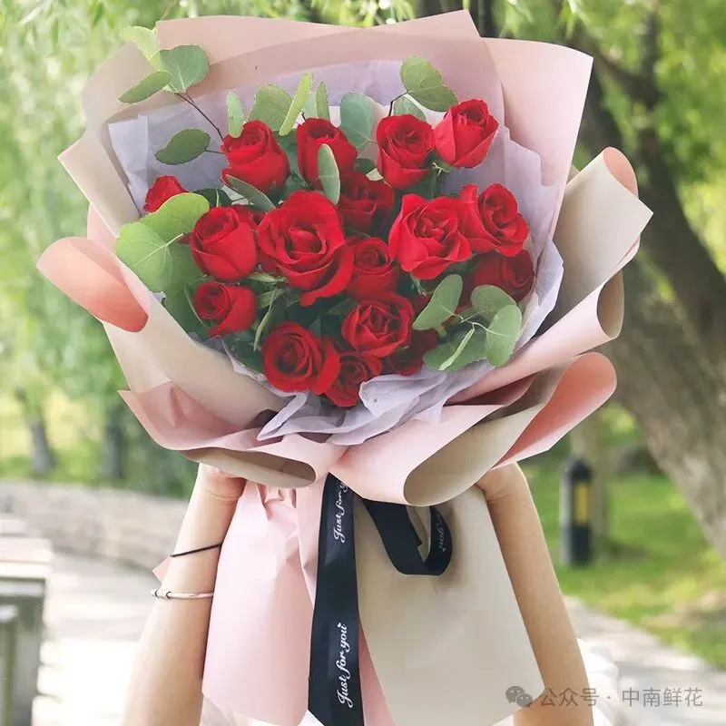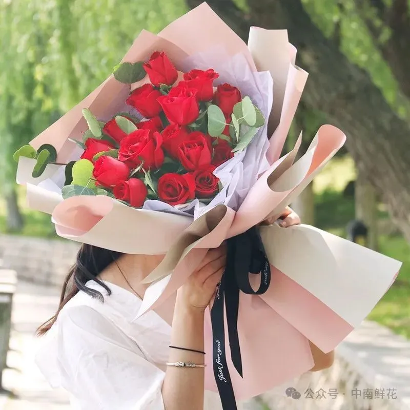 选择与花束颜色相协调或形成对比的包装纸,如粉色花朵搭配白色或淡紫色包装纸,能增添清新雅致感。