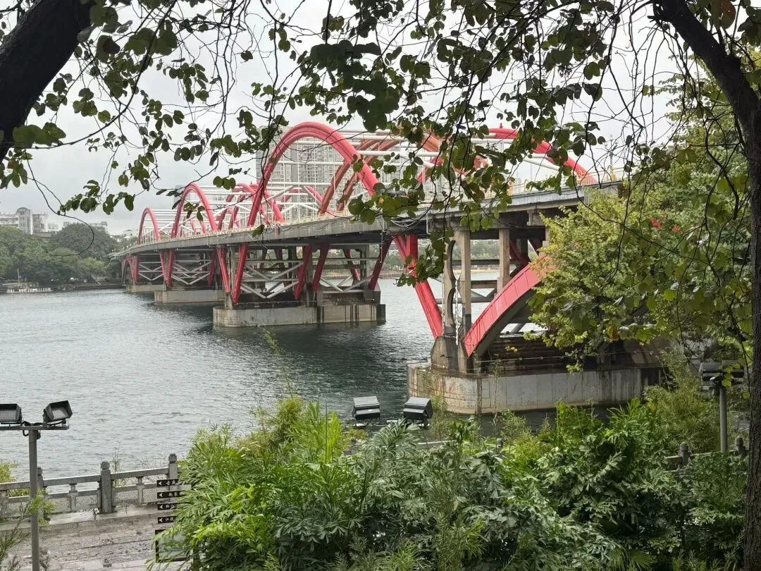 但真正让马鞍山封神的,还是它的 “上帝视角” 。登顶的那一刻,你绝对会“哇”出声!蜿蜒的柳江像一条发光的翡翠腰带,把整个柳州城温柔地抱在怀里。白天的城市像个精致的沙盘,到了傍晚,才是重头戏。