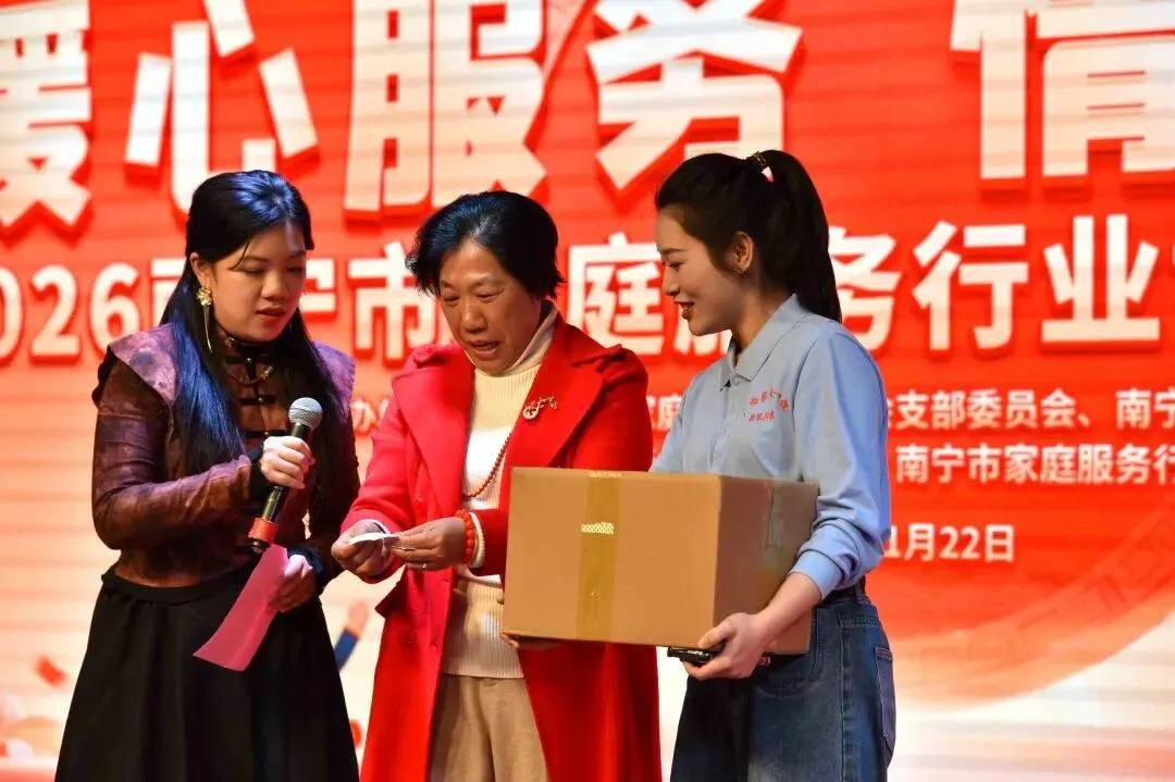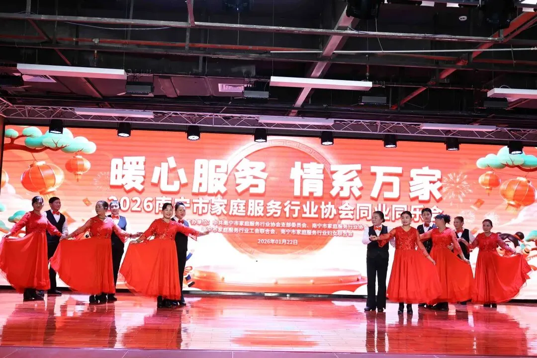 值此新春佳节来临之际,为响应国家家政服务提质扩容政策、助力行业规范化发展,1月22日下午,南宁市家庭服务行业协会与南宁市家庭服务行业工会联合会,在市总工会文化宫三楼多功能厅联合举办“暖心服务 情系万家”2026新春同业同乐会。主管部门领导、会员单位及社会各界代表共400余人欢聚一堂,共叙情谊、共话发展。