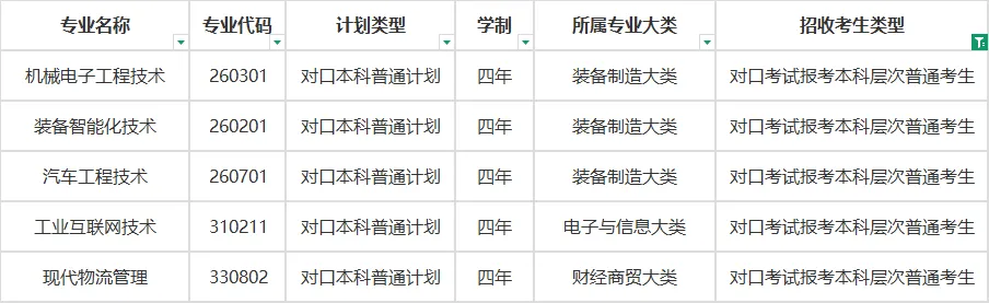 机械电子工程技术 | 260301 | 四年 | 7500 |