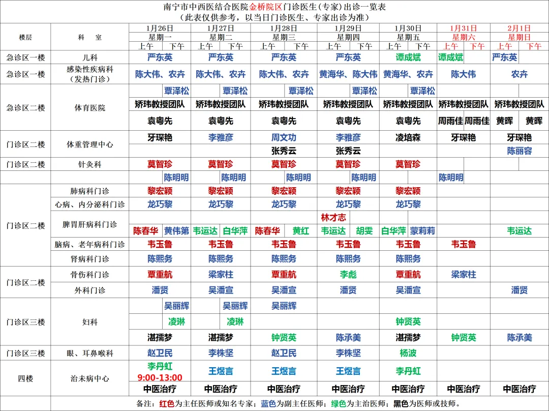 1月26日-2月1日金桥院区