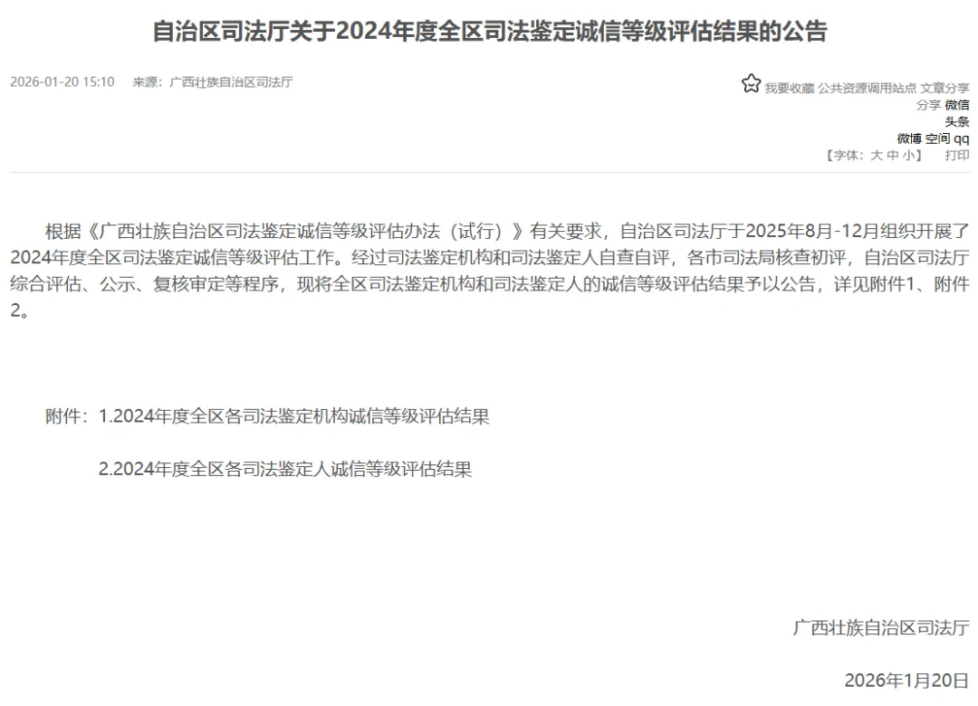 据悉,该所已连续三年获评最高诚信等级,也是柳州市唯一获此殊荣的司法鉴定机构,充分展现了其行业内的专业引领作用。