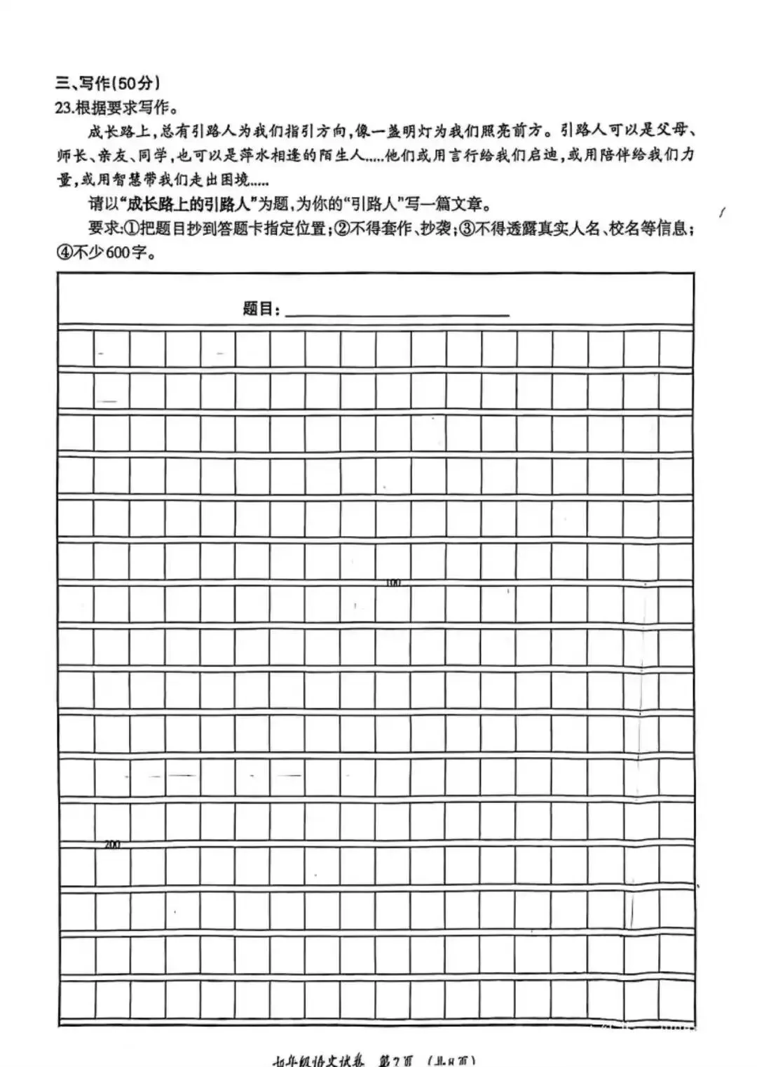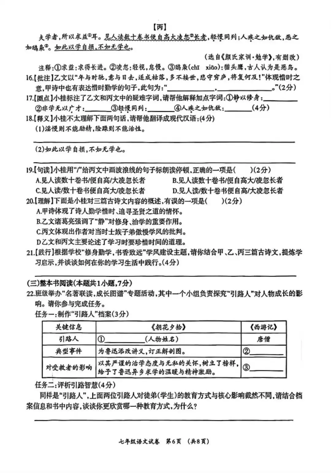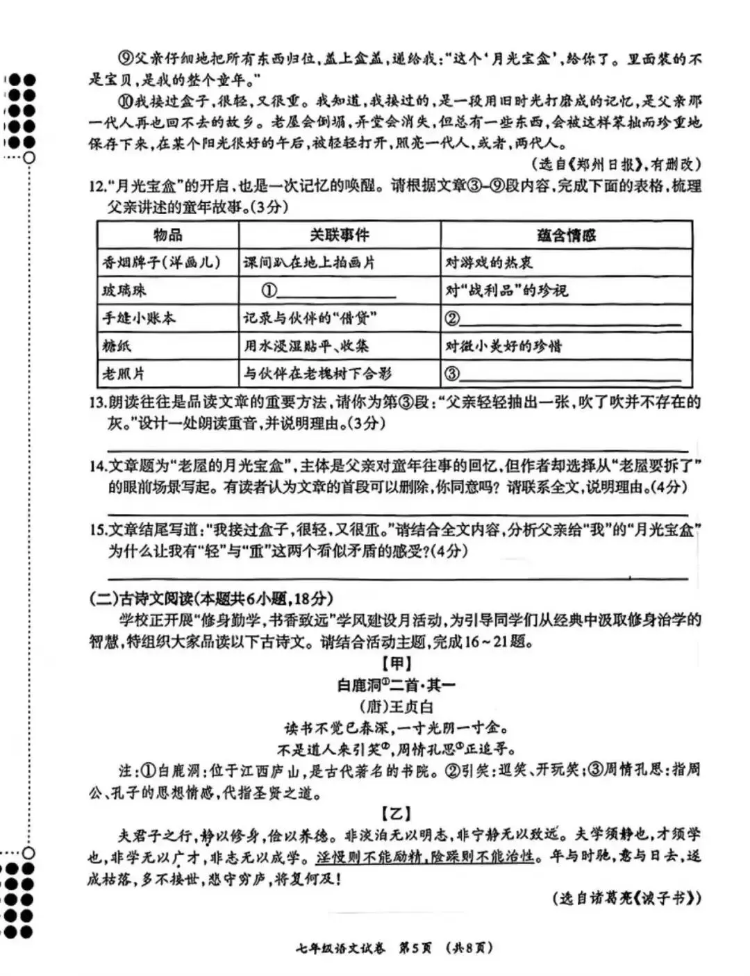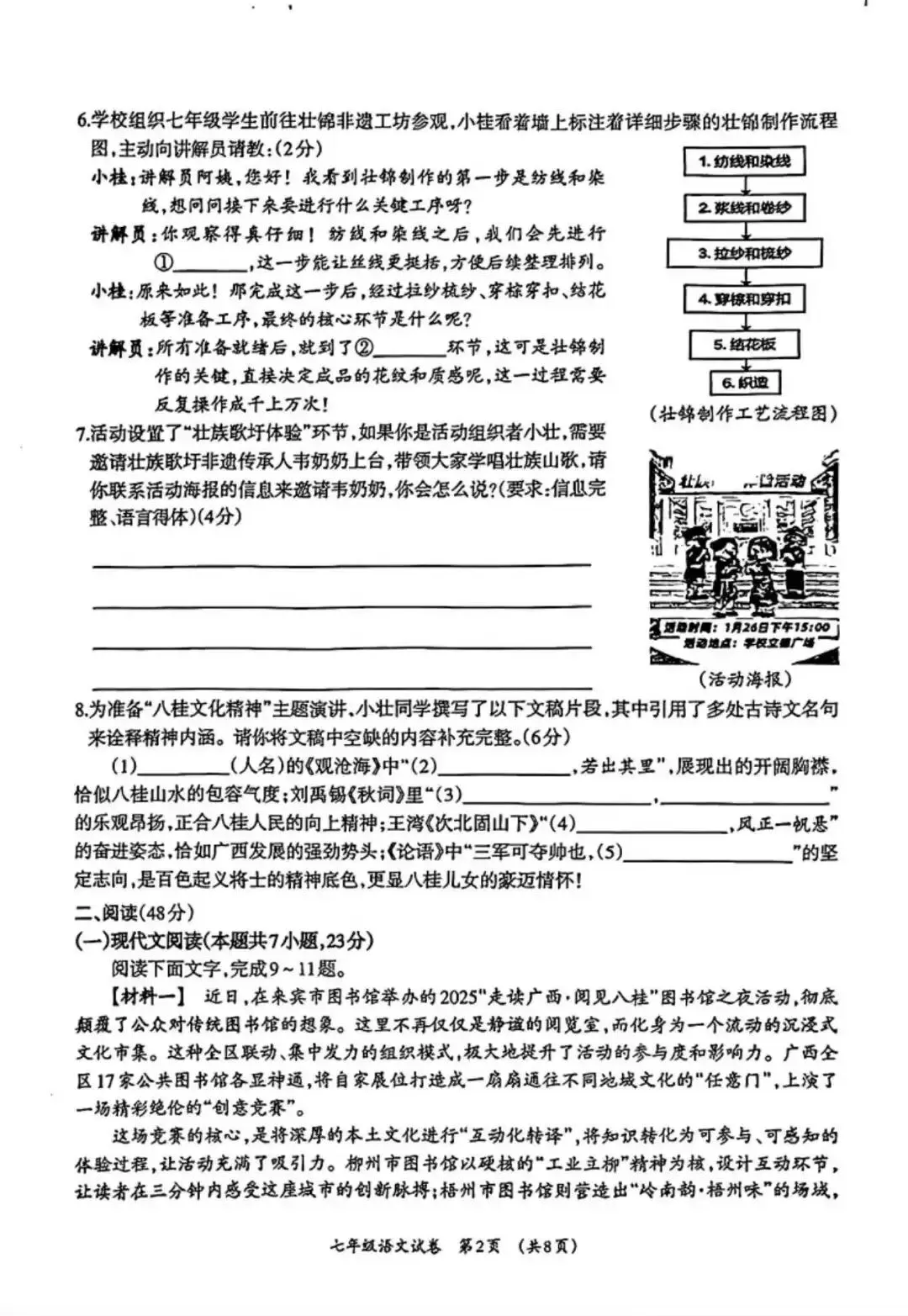 柳州市七年级语文上册期末考试的命题思路发生明显转变:通过增加主观题、缩减客观题的方式,更聚焦于学生生活经验的积累与个性化观点的表达,强调语文学习与现实生活的联结。