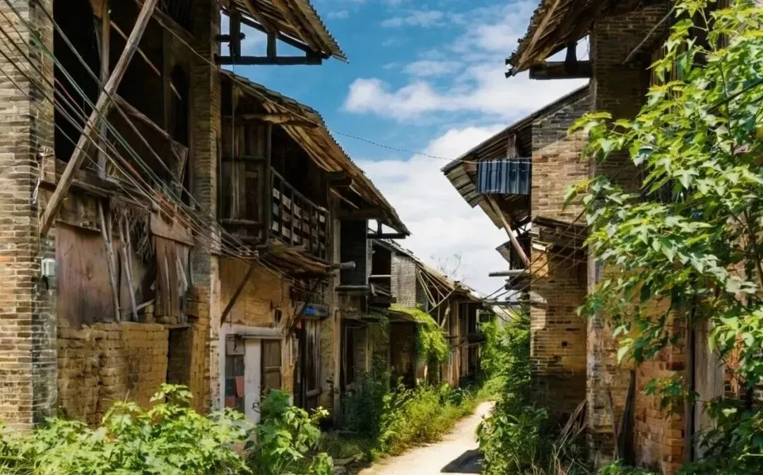 年久失修的砖木结构古屋整齐排列,却是满眼的残垣断壁、野草凄凄,裂缝在日复一日的风吹雨打中长成沧桑的
