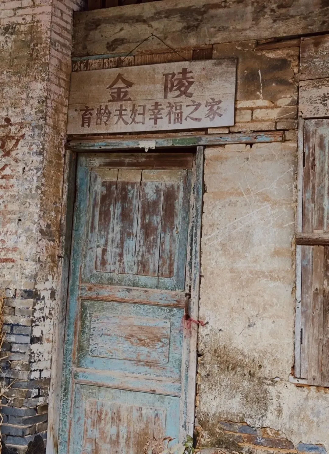 上世纪常见的简单木门,斑驳的墙面
