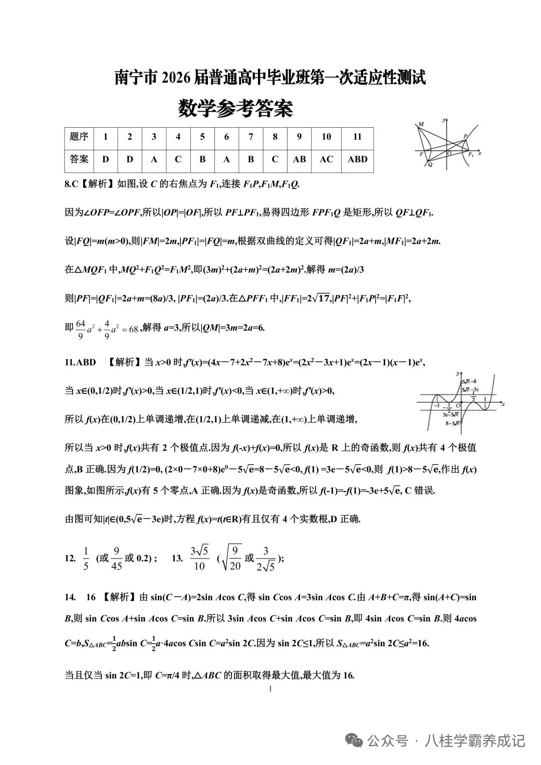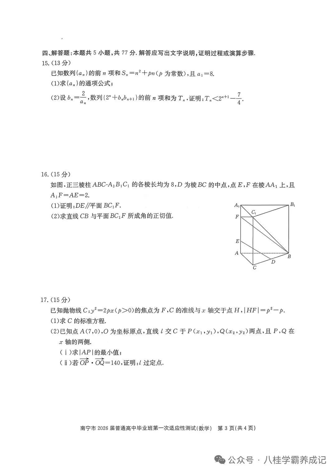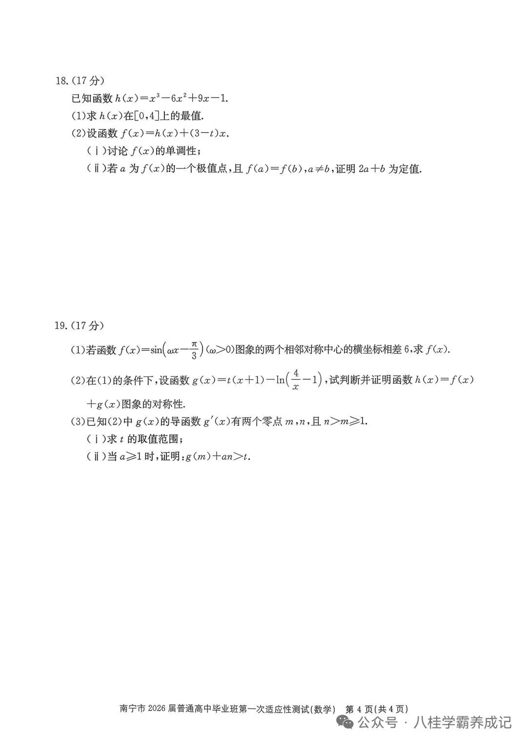 >南宁市2026届普通高中毕业班第一次适应性测试数学 试卷