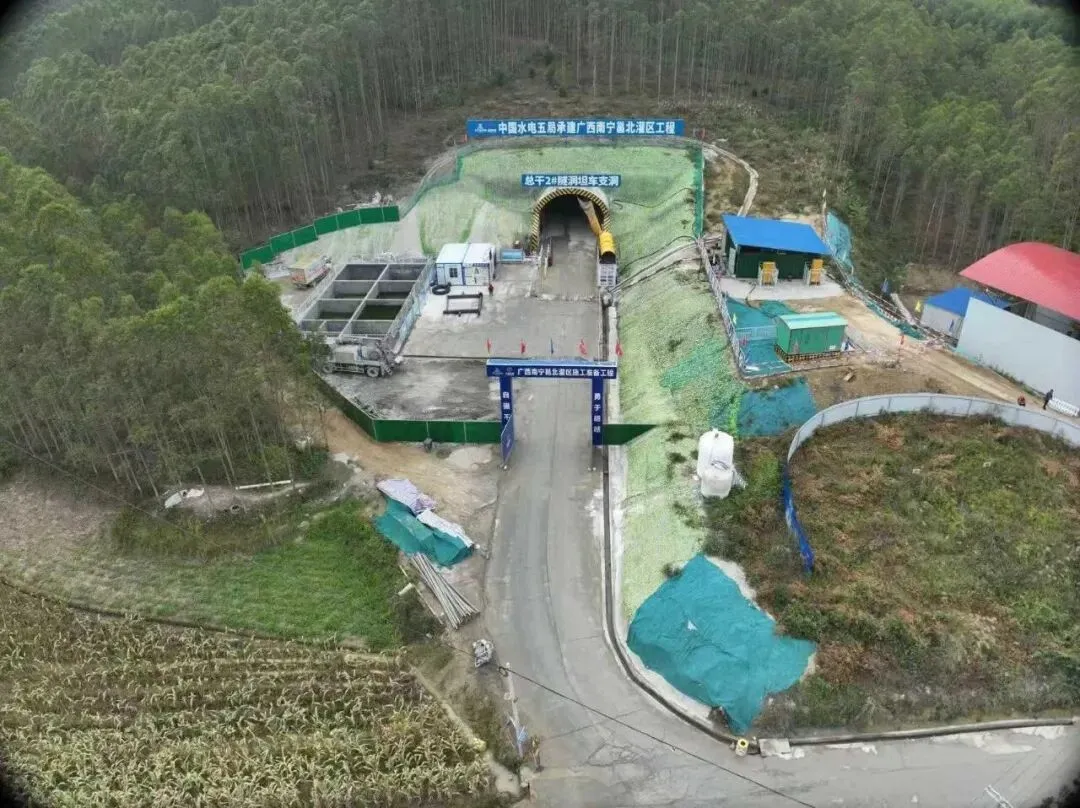 广西南宁市邕北灌区工程马山县总干2号隧洞坦车支洞施工现场