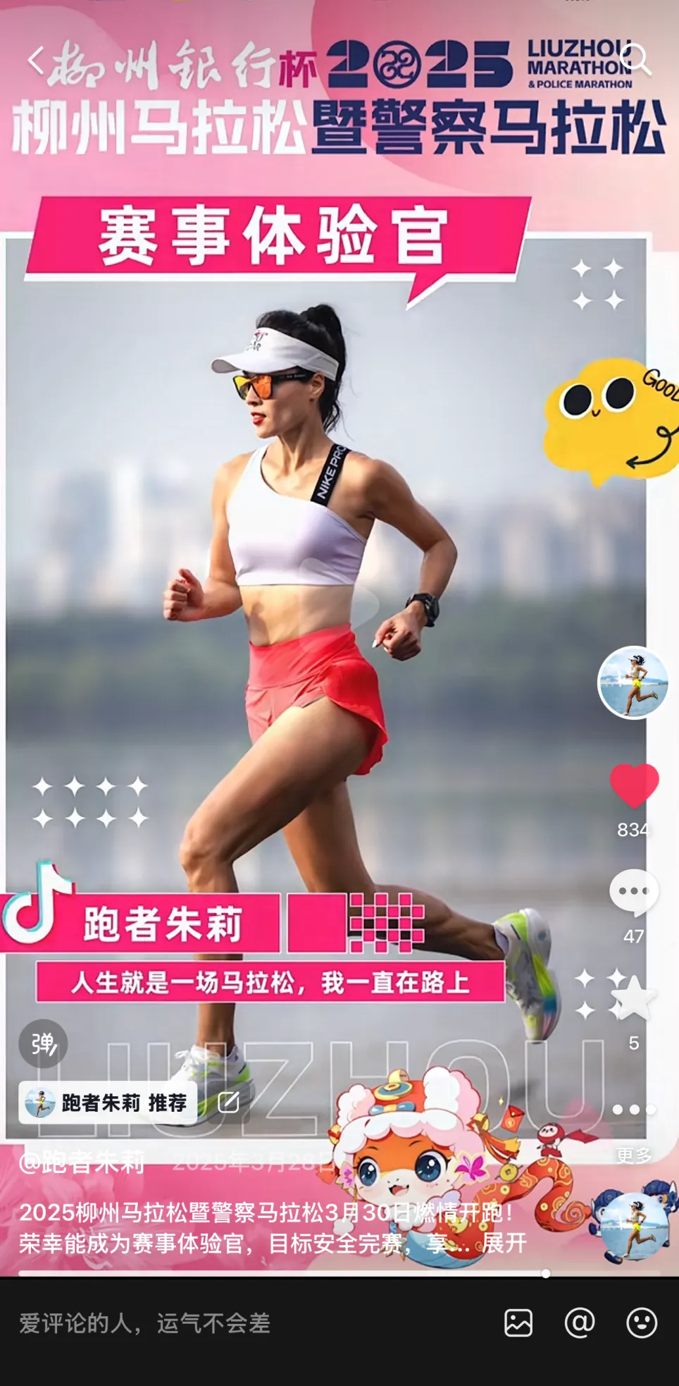4.有机会参与柳州马拉松赛事相关视频拍摄,与赛事官方共创内容,获得官方流量扶持;