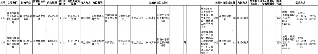 有编制,柳州市铁五中学2026春季教师招聘