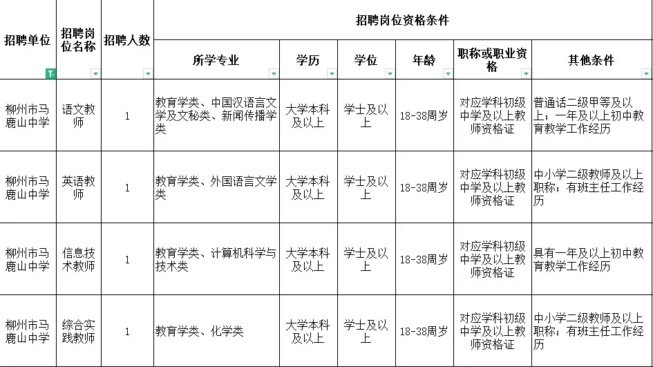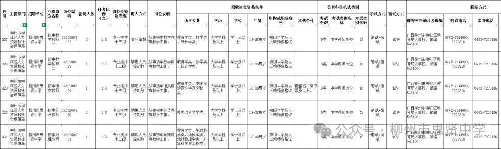 柳州市4所学校招聘教师