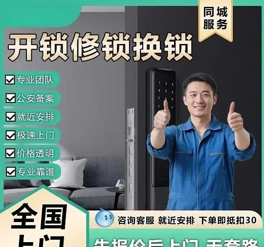 24小时同城上门开锁换锁服务,快速响应、安全可靠、价格透明我们提供同城专业修锁、换锁、配汽车钥匙、汽车开锁、配备用汽车钥匙等服务。专业上门安锁、保险柜开锁、开U型锁、防盗门开锁及修锁。服务正规,涵盖密码锁、防盗门锁、保险柜锁、智能锁等。