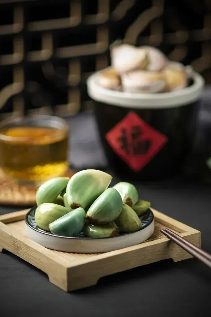 白生生的蒜瓣经过醋的浸泡